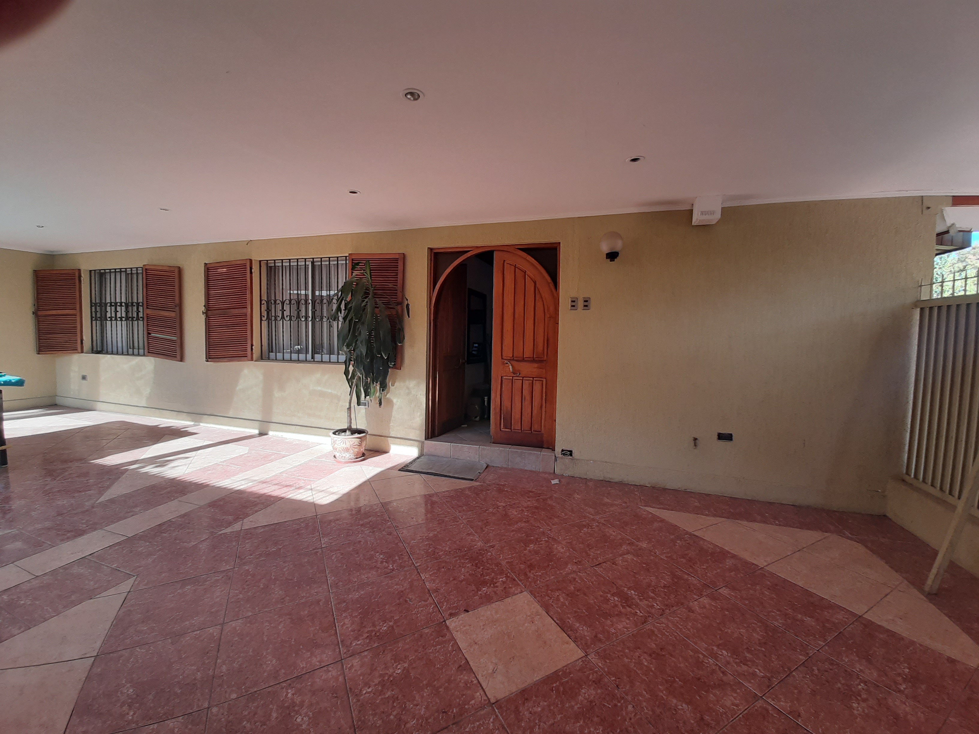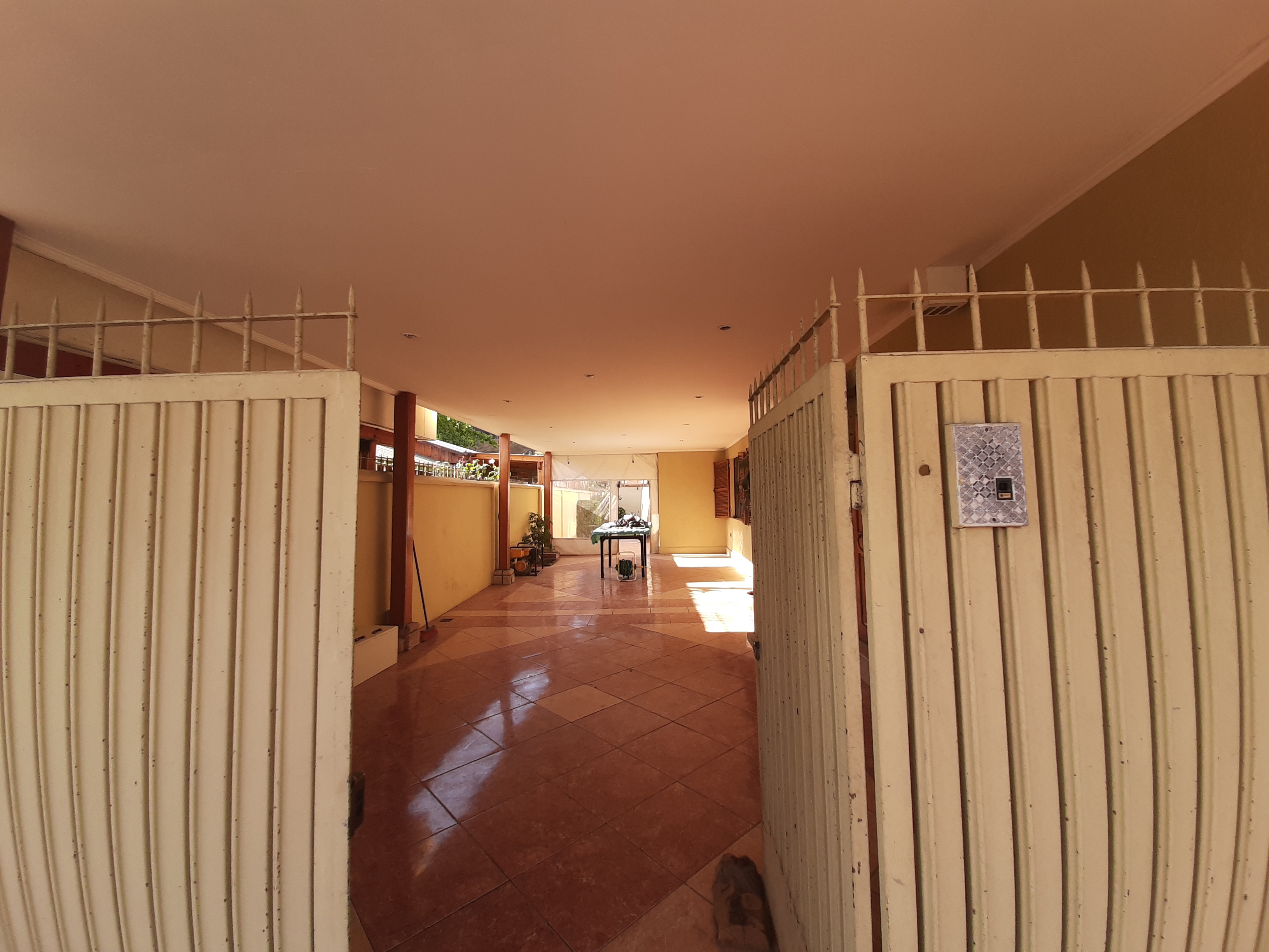 Tiene una entrada de Vehiculo techada , grande , que sirve hasta como una terraza , ya que no se ve desde la calle ,