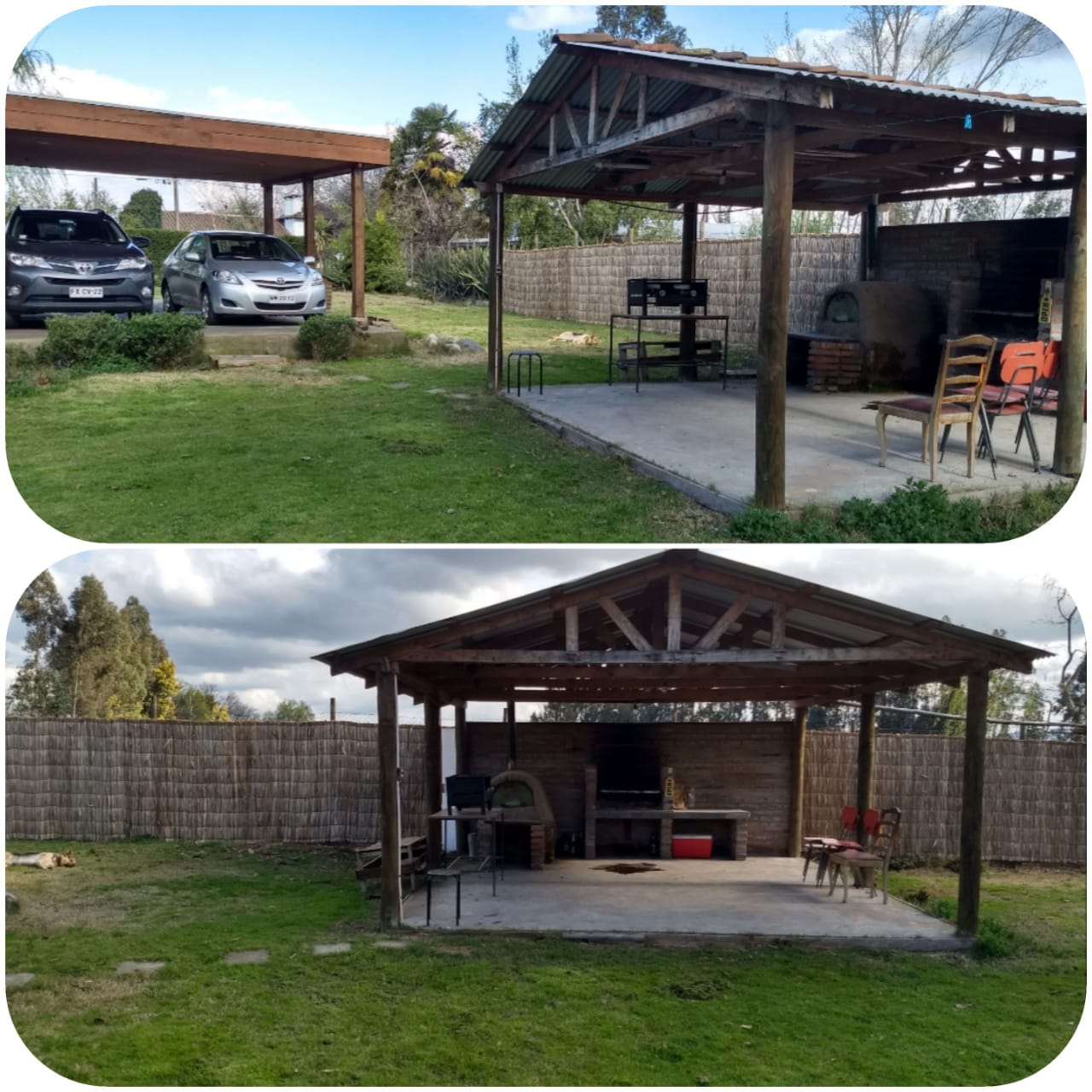 Quincho en construcción con asadera y horno de barro